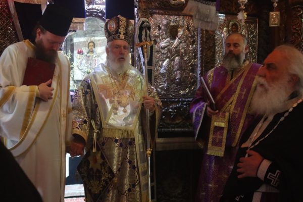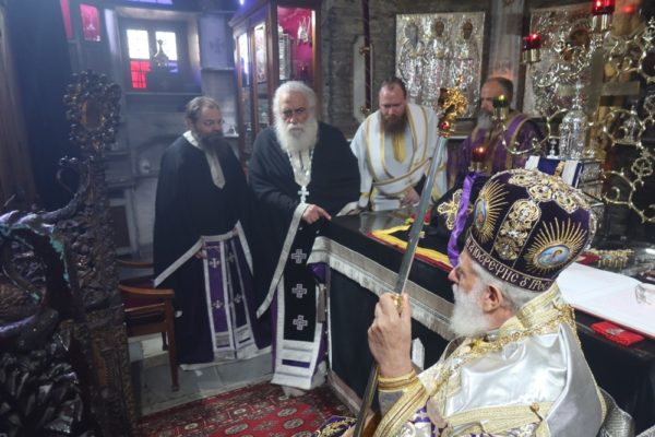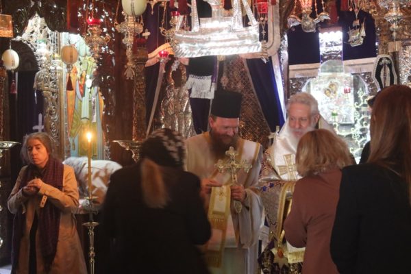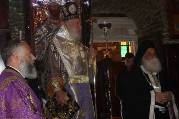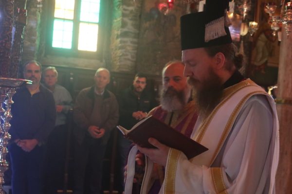Συμμετείχαν συλλειτουργικά ο Ηγούμενος και οι Πατέρες της Μονής, καθώς καςι Ανδρίοι πιστοί.