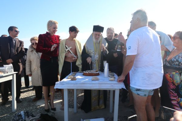 Μετά το πέρας της τελετής ο Σεβασμιώτατος κ. Δωρόθεος Β’ μετέβη στην παραλία της Αζολίμνου, όπου έρριψε ωσαύτως τον Τίμιο Σταυρό στη θάλασσα και ευλόγησε την Αγιοβασιλειόπιτα του Συλλόγου Χειμερινών Κολυμβητών, του οποίου και αποτελεί μέλος.