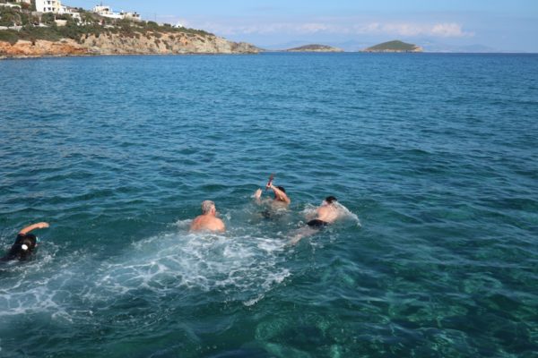 Μετά το πέρας της τελετής ο Σεβασμιώτατος κ. Δωρόθεος Β’ μετέβη στην παραλία της Αζολίμνου, όπου έρριψε ωσαύτως τον Τίμιο Σταυρό στη θάλασσα και ευλόγησε την Αγιοβασιλειόπιτα του Συλλόγου Χειμερινών Κολυμβητών, του οποίου και αποτελεί μέλος.