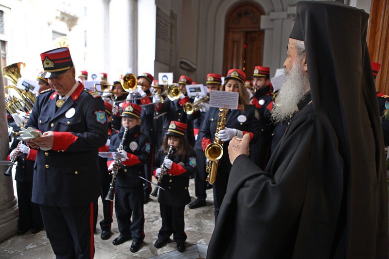 Στα προπύλαια του Μητροπολιτικού Ναού τον Σεβασμιώτατο ανέμενε η Δημοτική Φιλαρμονική Λαμίας, η οποία υπό την εμπνευσμένη καθοδήγηση του Αρχιμουσικού κ. Δημητρίου Μαντά παιάνισε την Φήμη του Σεβασμιωτάτου, τα Πανελλήνια πρωτοχρονιάτικα κάλαντα, καθώς και τα Παραδοσιακά κάλαντα της Τήνου αποσπώντας την ευλογία του Ποιμενάρχου μας και τις πατρικές εγκάρδιες ευχές του για καλή χρονιά γεμάτη υγεία και πρόοδο.
