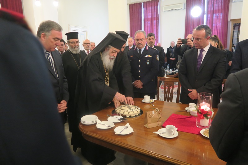 Αμέσως μετά την Δοξολογία ο Ποιμενάρχης μας κατά το έθιμο μετέβη στο Περιφερειακό Κατάστημα Στερεάς Ελλάδος προκειμένου να ευλογήσει την Πρωτοχρονιάτικη πίτα, παρουσία του Αντιπεριφερειάρχου Φθιώτιδος κ. Ευθυμίου Καραΐσκου και όλων των επισήμων.
