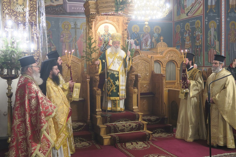 Στον όρθρο χοροστάτησε ο Σεβασμιώτατος Μητροπολίτης μας κ. Νικόλαος, ο οποίος κατόπιν προηξήρχε και της πανηγυρικής Αρχιερατικής Θείας Λειτουργίας του Μεγάλου Βασιλείου, η οποία μετεδόθη απευθείας μέσω του «STAR Κεντρικής Ελλάδος» και μέσω του Ραδιοφωνικού Σταθμού της Ιεράς Μητροπόλεως μας (89,4 fm).