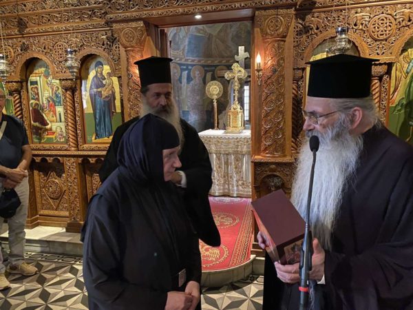 Τέλος, ο κ. Συμεών υποδέχθηκε τον σεβαστό γέροντα, Αρχιμ. π. Αστέριο, τους πατέρες και τα μέλη της Αδελφότητος, καθώς και τον όμιλο των επιστημόνων στην Ιερά Μονή Παναγίας Δαμάστας, όπου έγιναν δεκτοί με εγκαρδιότητα από την Οσιολογιωτάτη Καθηγουμένη της Μονής, Γερόντισσα Ιωάννα.
