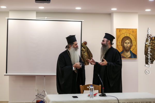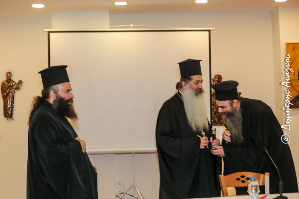 Τέλος, ο Σεβασμιώτατος κ. Συμεών στον πατρικό του λόγο ευχαρίστησε τον Άγιο Ιεροκήρυκα Αρχιμ. π. Ιωήλ Κωνστάνταρο για την αποδοχή της προσκλήσεως και τον κόπο στον οποίο υπεβλήθη και τον συνεχάρη για την ανάπτυξη και την θεολογική προσέγγιση του σπουδαίου και επικαίρου θέματος.