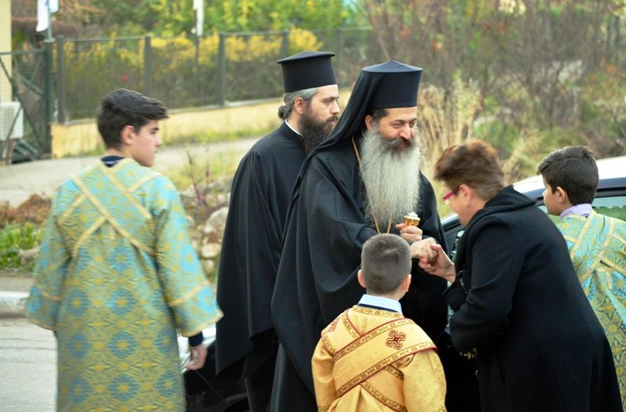 Ο Ποιμενάρχης μας ευχαρίστησε τον π. Δημήτριο για το καλωσόρισμα και τον συνεχάρη για την άριστη προετοιμασία και διεξαγωγή της Πανηγύρεως. Ο Σεβασμιώτατος ανέπεμψε δέηση προς τον Μεγαλοδύναμο Θεό, υπέρ ταχείας αναρρώσεως και Θείας βοηθείας στον π. Δημήτριο, προτρέποντας τους Ιερείς και τους πιστούς ενορίτες, να προσεύχονται με εντατικούς ρυθμούς για τον π. Δημήτριο, ώστε να ξεπεράσει την δοκιμασία του και να επιστρέψει και πάλι υγιής στα καθήκοντά του, πλάι στους ανθρώπους που τον αγάπησαν και τους αγάπησε και πλάι στην οικογένειά του.