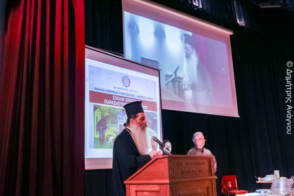 Ο Σεβασμιώτατος κ. Συμεών ευλογώντας το δεύτερο ανοιχτό μάθημα και χαιρετίζοντας και συγχαίροντας πατρικά και αυτή την προσπάθεια της Σχολής της τοπικής Εκκλησίας χαρακτηριστικά ανέφερε: