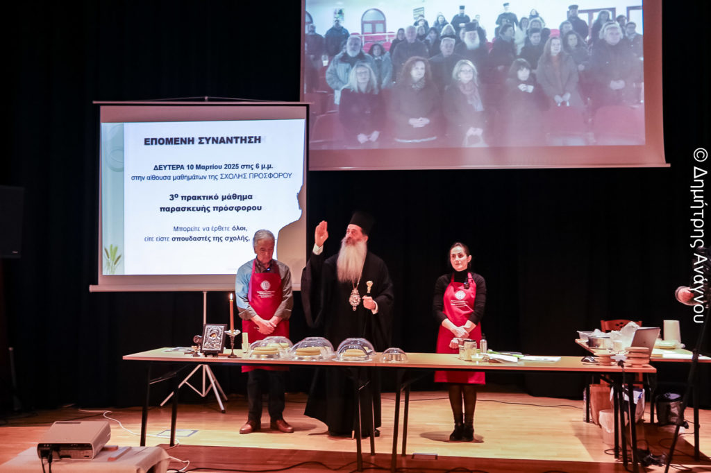 Το δεύτερο ανοιχτό μάθημα παρασκευής προσφόρου της Σχολής Παρασκευής Προσφόρου πραγματοποιήθηκε στο Αμφιθέατρο του Πνευματικού και Διοικητικού Κέντρου της Ιεράς Μητροπόλεως Φθιώτιδος στη Λαμία παρουσία του Σεβασμιωτάτου Μητροπολίτου Φθιώτιδος κ. Συμεών.