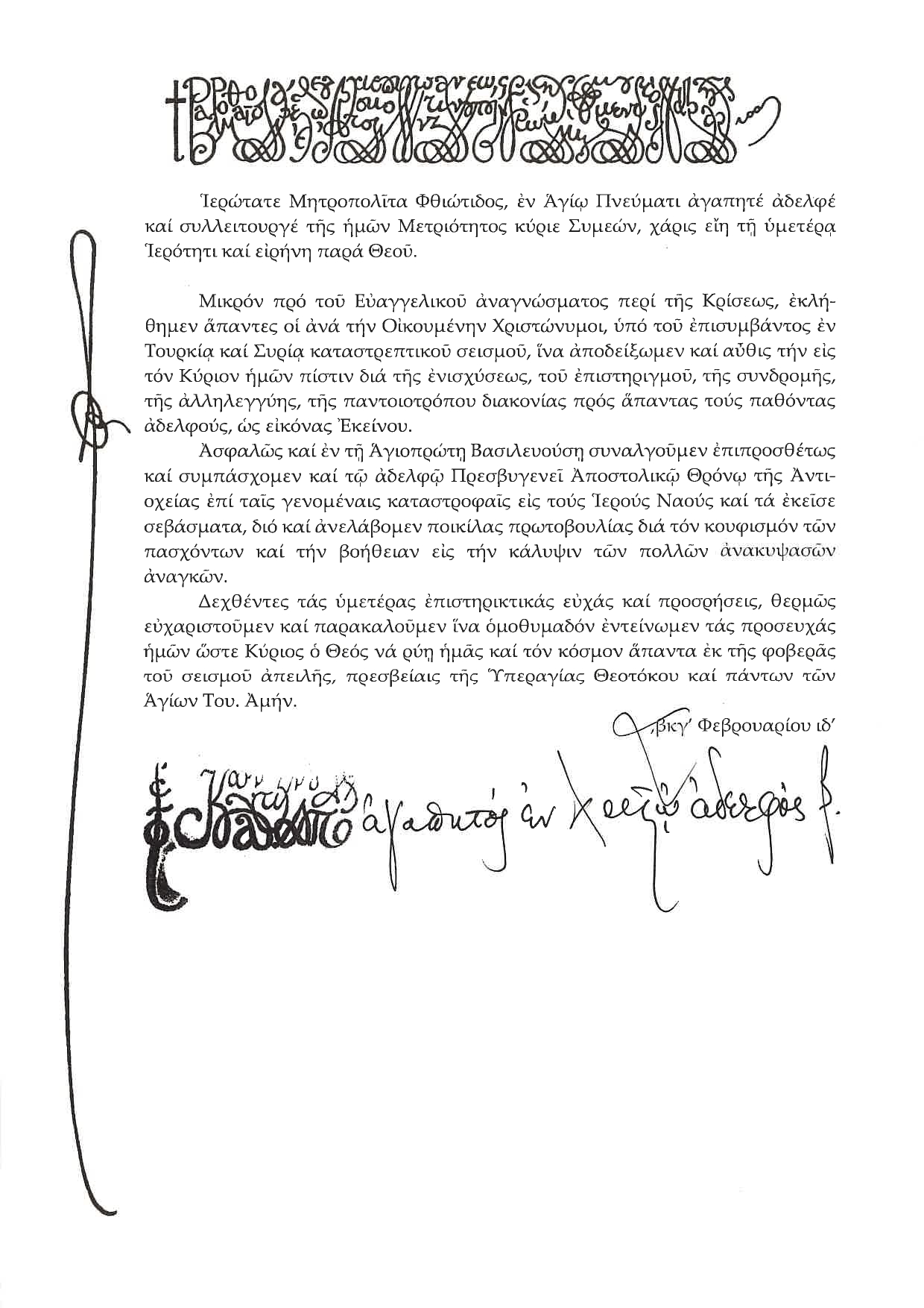 Η επιστολή του Οικουμενικού Πατριάρχη