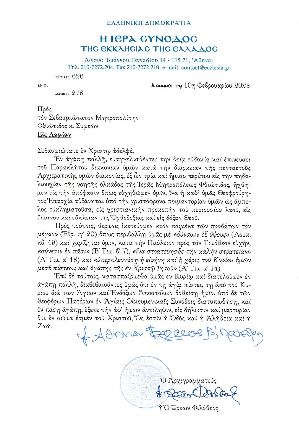 Η επιστολή της Ιεράς Συνόδου της Εκκλησίας της Ελλάδος