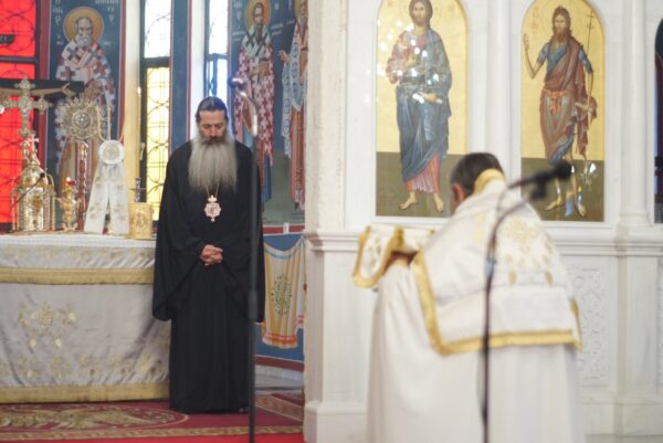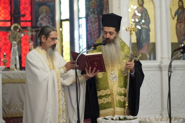 Την Θεία Λειτουργία ετέλεσε ο Προϊστάμενος – Εφημέριος του Ναού Αιδεσιμ. Πρωτ. π. Ιωάννης Καραμέρης, ενώ έψαλλαν ο Διευθυντής της Σχολής Βυζαντινής Μουσικής της Ιεράς Μητροπόλεως μας κ. Ανδρέας Ιωακείμ και ο Πρωτοψάλτης του Ναού, καθηγητής της Σχολής κ. Ανάργυρος Βλάχος.