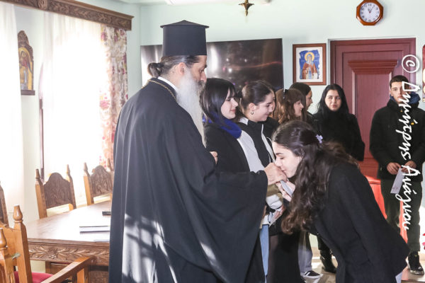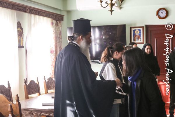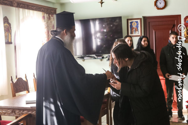 Ο Σεβασμιώτατος κ. Συμεών ενημερώθηκε από τον Διευθυντή του Γραφείου Νεότητος, Αιδεσ. Πρωτ. π. Κωνσταντίνο Βάγια και για τις υπό εξέλιξη τακτικές μετακατασκηνωτικές, ουσιαστικά προκατασκηνωτικές, συναντήσεις, οι οποίες πραγματοποιούνται σε τακτικά χρονικά διαστήματα με υβριδικό τρόπο. Ο κ. Συμεών συνεχάρη τους νέους και τις νέες και τους προσέφερε και ένα συμβολικό δώρο για τις εόρτιες αυτές περιστάσεις.