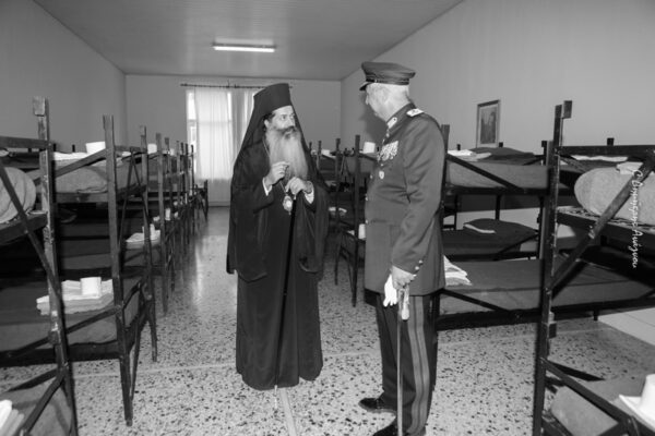 Ιδιαίτερα συγκινητικές ήταν οι στιγμές της ξεναγήσεως, καθότι ο Σεβασμιώτατος επισκέφθηκε όλους τους χώρους του Κέντρου, γεγονός που προεξένησε τον θαυμασμό του Ταξιάρχου και των Αξιωματικών, καθώς ο Ποιμενάρχης θυμόταν τον θάλαμό του, το κρεβάτι του, τις σκοπιές, την τραπεζαρία και γενικά μοιράστηκε τις μοναδικές εμπειρίες του από την πολύμηνη διαμονή του στο Κέντρο.