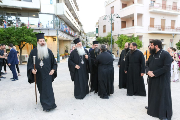 «Έχουμε μεγάλη χαρά απόψε, διότι μετά από πολύ καιρό βρισκόμαστε απόψε εδώ όλοι μαζί σαν μια οικογένεια. Ο Ιερός Κλήρος, οι Άρχοντες, ο λαός μας, οι Δάσκαλοι των Σχολείων μας με τους μαθητές τους. Όλη η Φθιώτιδα μια οικογένεια. Στερηθήκαμε ο ένας την παρουσία του άλλου. Τα πρόσωπα όλων μας διψούν για κοινωνία, για επικοινωνία και φιλία. Θέλω στο πρόσωπο των Αγίων Αρχιερέων, οι οποίοι είναι και όμοροι και αποτελούν φύλακες Άγγελοι της ελαχιστότητος μου, αλλά και ζωντανά παραδείγματα ποιμαντορίας, ευθύνης, αγάπης, σύνεσης και καλοσύνης, να ευχαριστήσω τον Μακαριώτατο Αρχιεπίσκοπό μας και την Ιερά Σύνοδο της Εκκλησίας της Ελλάδος, διότι έθεσαν τις εκδηλώσεις μας υπό την αιγίδα Της.