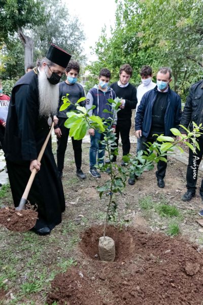 Γνωρίζοντας την αγάπη του Αγίου Νεκταρίου για το φυσικό περιβάλλον και τα δένδρα, μετά το πέρας της εκδήλωσης, ακολούθησε, από τους μαθητές και τις μαθήτριές, δενδροφύτευση στον εκτεταμένο κήπο του Σχολείου. Το Εκκλησιαστικό Σχολείο Λαμίας, εκτός από σύγχρονα και λειτουργικά γήπεδα ποικίλων ομαδικών αθλημάτων, διαθέτει μεγάλο, κατάφυτο προαύλιο, κάτι που δεν απαντάται συχνά σε σχολεία, τουλάχιστον αστικά!