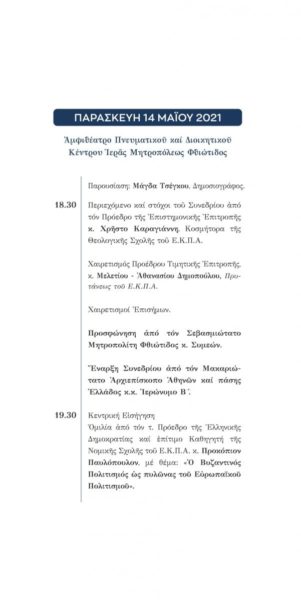 Η Ιερά Μητρόπολις Φθιώτιδος στο πλαίσιο του εορτασμού των διακοσίων ετών από την Ελληνική Επανάσταση του 1821 διοργανώνει Επιστημονικό Συνέδριο με θέμα: «Ο ΕΘΝΙΚΟ -ΑΠΕΛΕΥΕΡΩΤΙΚΟΣ ΑΓΩΝΑΣ ΤΟΥ 1821 ΚΑΙ Η ΠΡΟΣΦΟΡΑ ΤΟΥ ΙΕΡΟΥ ΚΛΗΡΟΥ ΤΗΣ ΦΘΙΩΤΙΔΑΣ».