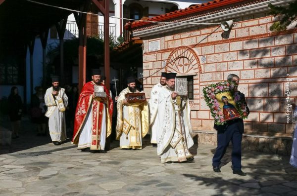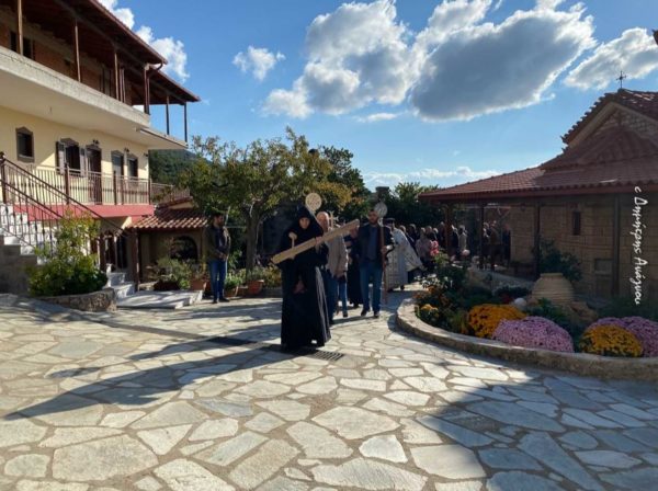 Τον Σεβασμιώτατο κ. Συμεών υπεδέχθη με αγάπη και σεβασμό η Αγία Καθηγουμένη της Μονής Γερόντισσα Ιουστίνα.