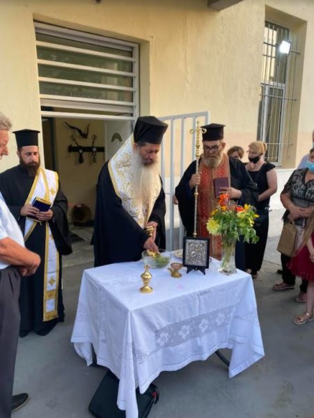 Στην συνέχεια ο Σεβασμιώτατος συνοδευόμενος από τους Αντιδημάρχους του Δήμου Δομοκού κ. Νικόλαο Καναβό και κ. Ανδρέα Λαϊνά, τα μέλη του Δημοτικού Συμβουλίου κ. Νάνσυ Αυγέρη και κ. Γεώργιο Βιολιτζή, τον Πρόεδρο της τοπικής Κοινότητος Μακρυρράχης κ. Βασίλειο Δικόπουλο και την Πρόεδρο του Πολιτιστικού Συλλόγου Γυναικών Μακρυρράχης κ. Βασιλική Ζαβού, μετέβη στο παλαιό Δημοτικό Σχολείο του χωριού και ετέλεσε Αγιασμό στο Λαογραφικό Μουσείο και στο Πολιτιστικό Κέντρο που λειτουργεί στο ιστορικό αυτό κτίριο.