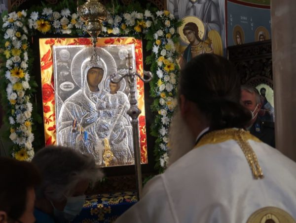 Η Παναγία μας, είναι ένα το πρόσωπο το οποίο, υπερκαλύπτει και εξαφανίζει κάθε δική μας αστοχία, κάθε δική μας απερισκεψία, κάθε δική μας αμαρτία, κάθε επιθυμία μας αποτυχία. Και γι’ αυτό αποτελεί για όλους μας καταφυγή, προστάτιδα, μεσίτρια, αποτελεί για όλους τη Μητέρα μας, γιατί μπορεί να μη μας γέννησε με φυσικό τρόπο, αλλά μας γεννά με πνευματικό τρόπο. Η Παναγία είναι το πρόσωπο, το οποίο μπορεί να γεννήσει μέσα στην καρδιά μας την αγάπη, την ανθρωπιά, την καλοσύνη, τη συγχωρητικότητα, την εμπιστοσύνη του ενός προς τον άλλον, τον σεβασμό του ενός προς τον άλλον. Η Παναγία μας είναι αυτή, η οποία μπορεί να γεννήσει την ηρεμία, την πραότητα και τη γαλήνη μέσα στη ζωή μας, που την έχουμε πολύ ανάγκη, σε μια ζωή ταραχής, σύγχυσης και πολλών και πολύπλευρων αντιξοοτήτων και δυσκολιών. Για αυτόν ακριβώς λοιπόν το λόγο είναι η προστάτιδα των θλιβομένων και είναι η παρηγοριά όλων των πονεμένων και τούτη τη μέρα και πάντοτε οι άνθρωποι που υποφέρουν, που πάσχουν, που πονούν, τρέχουν στην Παναγία μας και κυρίως τρέχουν στην Παναγία μας και βρίσκουν καταφυγή οι άνθρωποι, οι οποίοι είμαστε βυθισμένοι στις αμαρτίες, οι άνθρωποι, οι οποίοι έχουμε προδώσει τον Θεό, οι άνθρωποι, οι οποίοι έχουμε παραβεί το θέλημα του Θεού, γιατί ξέρουμε ότι μόνο στην Παναγία μπορούμε να βρούμε παρηγοριά, μόνο η Παναγία μπορεί να μας σκεπάσει και να μας στηρίξει, να μας ενδυναμώσει και να μας δώσει το κουράγιο που χρειαζόμαστε για να κάνουμε ένα νέο ξεκίνημα στη ζωή μας.