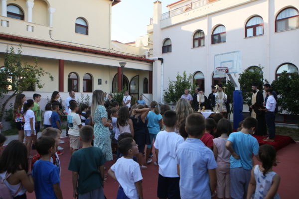 220 παιδιά προσχολικής και σχολικής ηλικίας, έως και 12 ετών, μαζί με γονείς και κηδεμόνες γέμισαν τον αύλειο χώρο παιδικής αναψυχής του Πνευματικού και Διοικητικού Κέντρου της Ιεράς Μητροπόλεως Φθιώτιδος, όπου ο Σεβασμιώτατος Μητροπολίτης Φθιώτιδος κ. Συμεών, παρουσία του Δημάρχου Λαμιέων κ. Ευθυμίου Καραΐσκου και του Συντονιστή του ΠΕΚΕΣ Στερεάς Ελλάδος κ. Χρήστου Μαρκαντώνη, τέλεσε τον καθιερωμένο αγιασμό για την έναρξη της νέας περιόδου στο τρίτο έτος λειτουργίας του ΚΔΑΠ «Αγιος Εφραίμ».