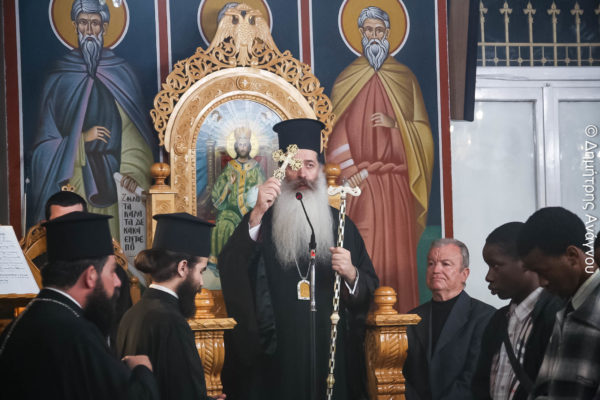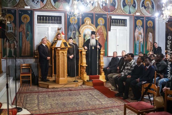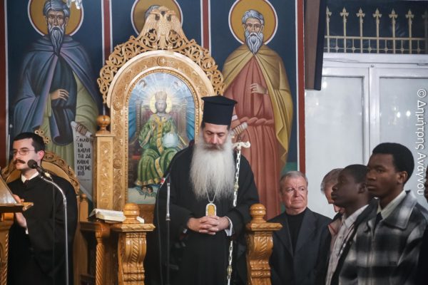 Τον κ. Συμεών υπεδέχθησαν με αγάπη και σεβασμό η ερίτιμος Διευθύντρια του Ιδρύματος κ. Σταυρούλα Πελέκη και όλα τα παιδιά, ο Πρόεδρος του Ηθικοθρησκευτικού Συλλόγου «Ο Ευαγγελιστής Λουκάς» κ. Γρηγόριος Μπούρδας και όλα τα μέλη του Διοικητικού Συμβουλίου, καθώς και ο κ. Εμμανουήλ Σταθούλιας, ως εκπρόσωπος της Αδελφότητος Θεολόγων « Ο Σωτήρ», ενώ μεταξύ των πιστών που είχαν κατακλύσει το Ναό ήταν και οι μαθητές και οι μαθήτριες του Προτύπου Εκκλησιαστικού Σχολείου Λαμίας «Ο Όσιος Βησσαρίων ο Αγαθωνίτης» από την Ζάμπια και την Μοζαμβίκη, καθώς και οι μαθητές που διαμένουν στο Εκκλησιαστικό Οικοτροφείο της Σχολής.