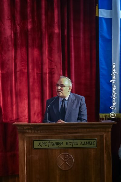 Τον Σεβασμιώτατο καλωσόρισε εκ μέρους της Αδελφότητος Θεολόγων «Ο ΣΩΤΗΡ», ο κ. Εμμανουήλ Σταθούλιας, υπεύθυνος της Χριστιανικής Εστίας Λαμίας, εκφράζοντας για μία ακόμη φορά την ευγνωμοσύνη όλων των συνεργατών αδελφών, εργατών του ιεραποστολικού έργου της Χριστιανικής Εστίας Λαμίας, για την πατρική στήριξη και έμπρακτη αρωγή, την οποία προσφέρει απλόχερα ο Επίσκοπος σε όλους τους τομείς του έργου της Χριστιανικής Εστίας, αναφερόμενος στην σπουδαιότητα της αυτοπρόσωπης παρουσίας του Επισκόπου, τόσο στην έναρξη των δράσεων, όσο και σε κάθε δράση, η οποία πραγματοποιείται καθ΄όλο το Εκκλησιαστικό έτος, υπογραμμίζοντας παράλληλα την άψογη συνεργασία με την τοπική Εκκλησία επ’αγαθώ των πιστών της περιοχής.