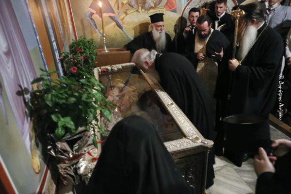 Ο Σεβασμιώτατος κ. Συμεών ενώπιον της λάρνακος του Οσίου Βησσαρίωνος με συγκίνηση ανέφερε: