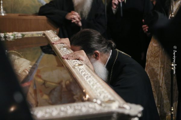 Ο Σεβασμιώτατος κ. Συμεών ενώπιον της λάρνακος του Οσίου Βησσαρίωνος με συγκίνηση ανέφερε: