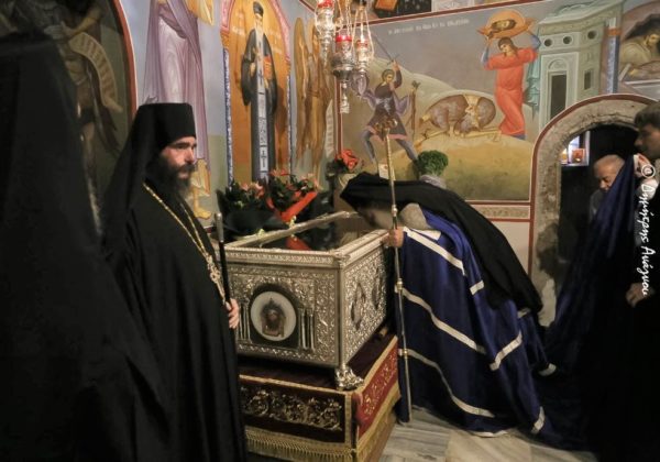 Ο Άγιος Καθηγούμενος της Μονής Αρχιμ. π. Γερμανός Γιαντσίδης στην προσφώνηση του υπογράμμισε ότι είναι πρώτη φορά στην ιστορία της Μονής, που ο οικείος Ποιμενάρχης ιερουργεί αυτή την ημέρα στο Μοναστήρι της Παναγίας, χαρακτηρίζοντας τον σημερινή Θεία Λειτουργία ιστορική, καθώς επίσης και γεγονός, το οποίο έρχεται να προστεθεί στην πολλή πατρική αγάπη, το ανύσταχτο ενδιαφέρον και την ανοιχτή αγκαλιά του Σεβασμιωτάτου για το Μοναστήρι και την Ιερά Αδελφότητα.