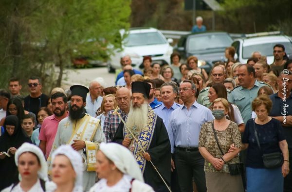 Αυτή την ευχή την προσφέρω, την χαρίζω μέσα από την καρδιά μου σε όλους ανεξαιρέτως, αφού σας ευχαριστήσω θερμά για τη σημερινή μεγαλειώδη, πνευματική σας παρουσία και εν πλω και εν οδώ και εύχομαι κάθε καλό στη ζωή σας, στις οικογένειες σας αλλά και με πολλή αγάπη θέλω να καλωσορίσω για μία ακόμη φορά όλους τους επισκέπτες της πόλεως του Αγίου Κωνσταντίνου, της πανέμορφης Λοκρίδος, της ειδυλλιακής και μοναδικής Φθιώτιδος, αυτούς που έχουν κατακλύσει τα χωριά μας στα βουνά κι αυτούς που έχουν γεμίσει και τις παραλίες μας, το παράλιο και παράκτιο μέτωπο της Μητροπόλεως μας. Όλους σας χαιρετούμε με πολλή αγάπη, σας καλωσορίζουμε και τους εγγύς και τους μακράν και ευχόμεθα να συνδεθείτε με αυτό τον τόπο περισσότερο από ότι είναι συνδεδεμένοι οι γηγενείς και οι ντόπιοι, να πολιτογραφηθείτε με την καρδιά σας και να γίνετε ένα με τη Φθιώτιδα και με τον πολιτισμό που αυτήν κομίζει και το ήθος το οποίο προσφέρει».
