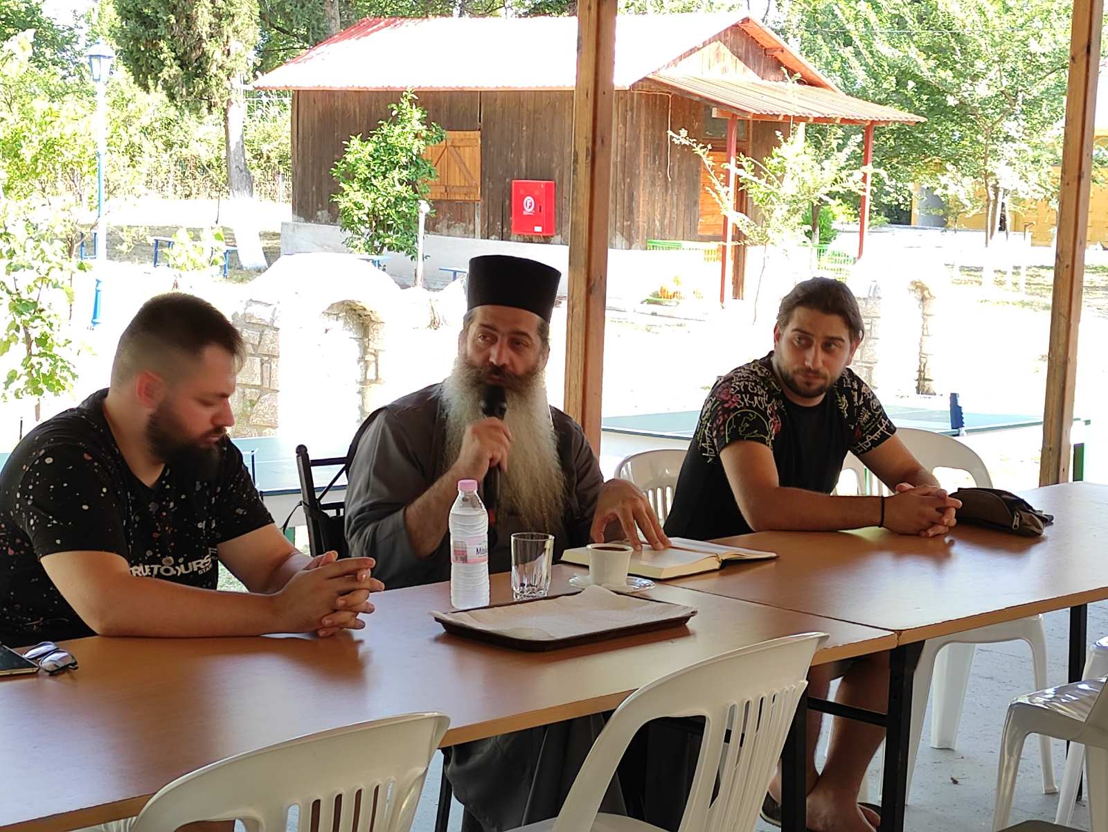 Μετά την Θεία Λειτουργία ο Σεβασμιώτατος ανέλυσε στα παιδιά, σύμφωνα με το πρόγραμμα, το Αγιογραφικό Ανάγνωσμα, ερμηνεύοντας περικοπή από την προς Ρωμαίους Επιστολή με καταληπτό και εύληπτο τρόπο, προσαρμοσμένο στα μάτια και στον κόσμο των παιδιών.