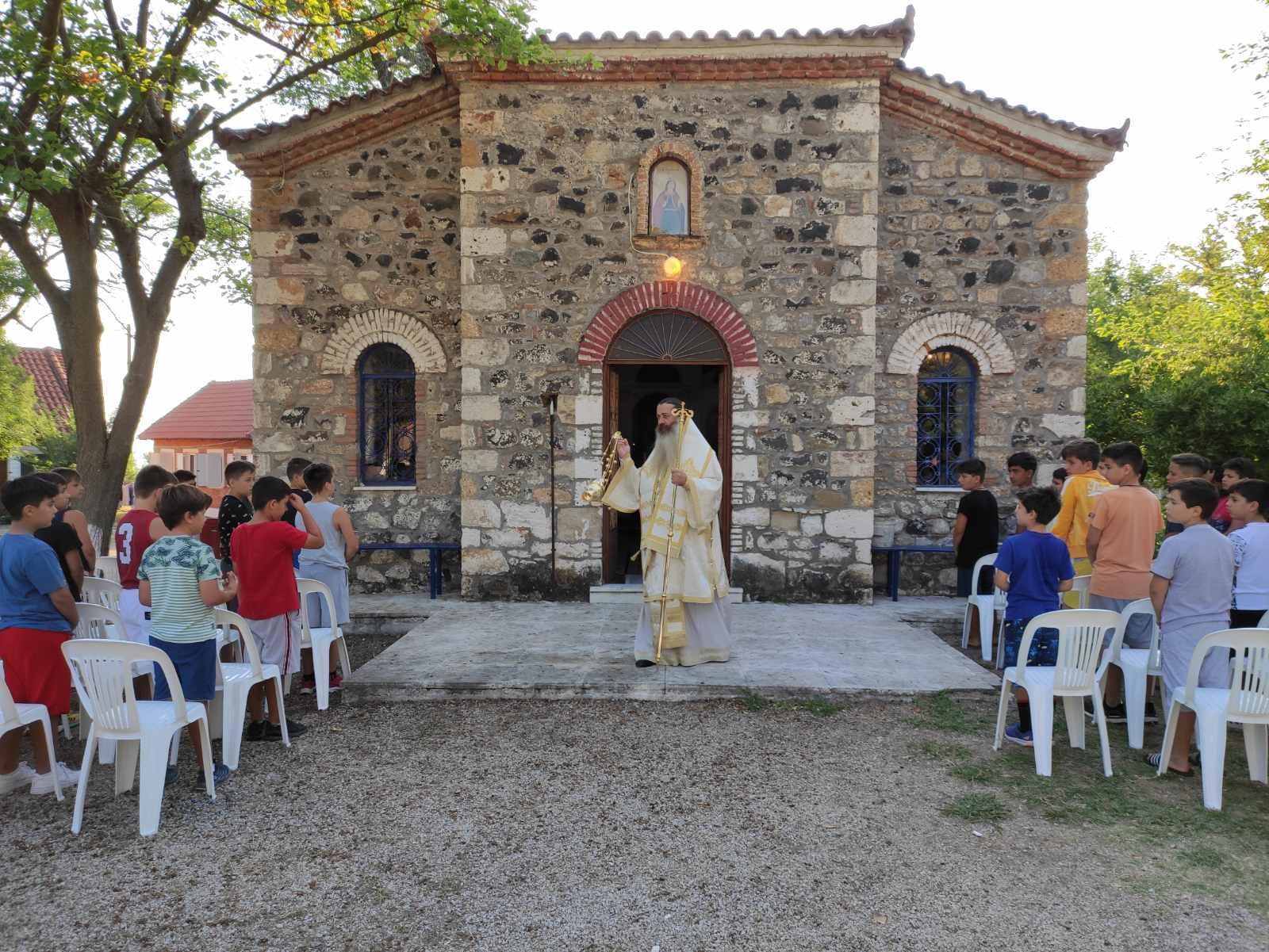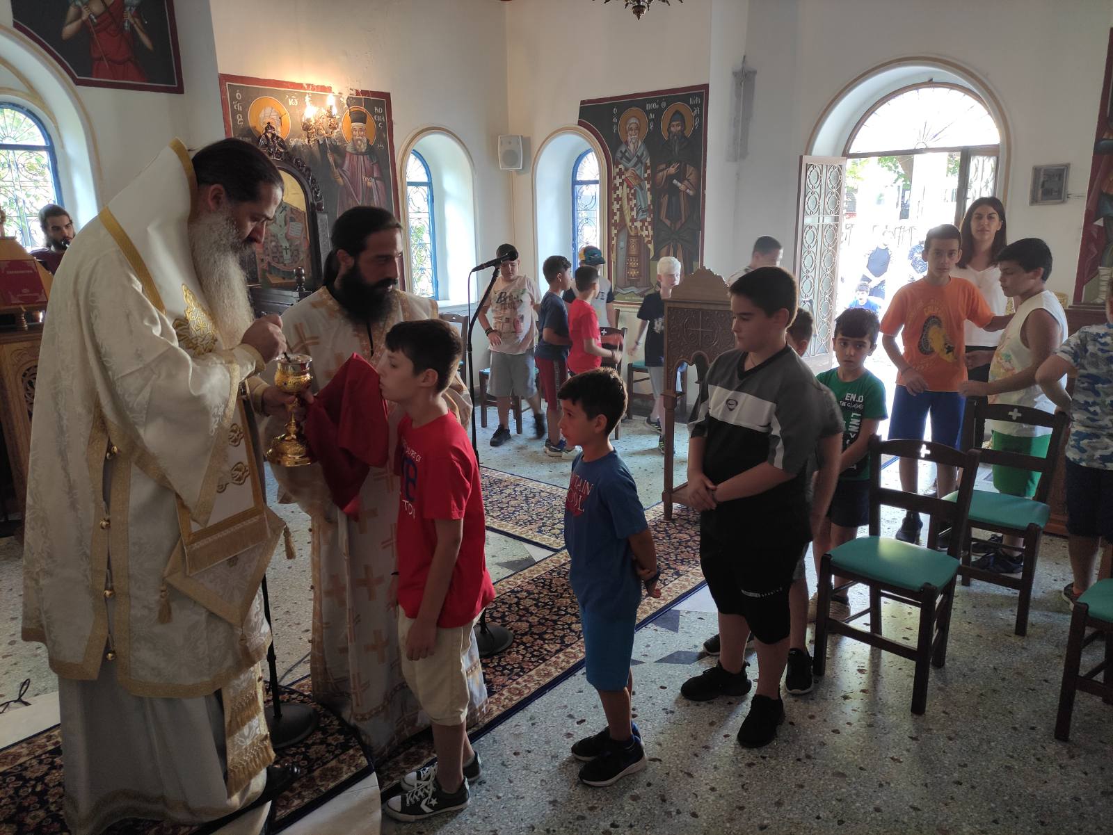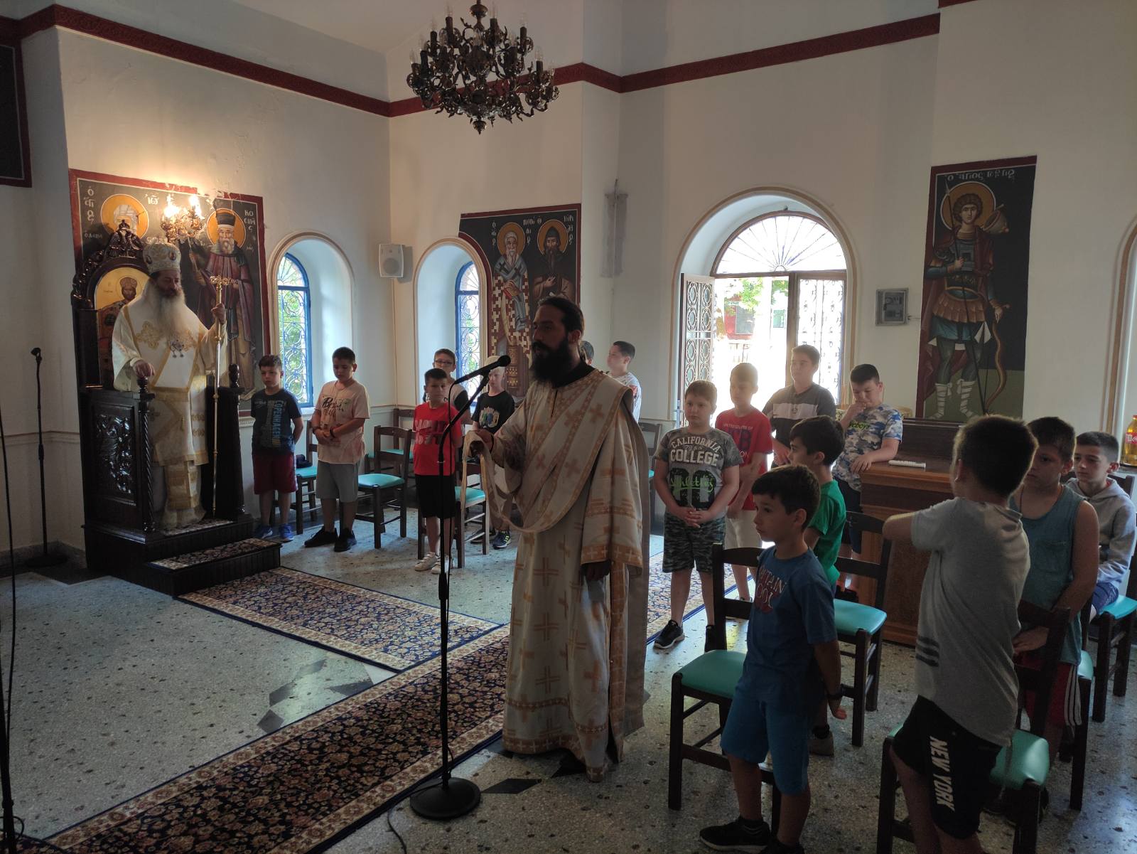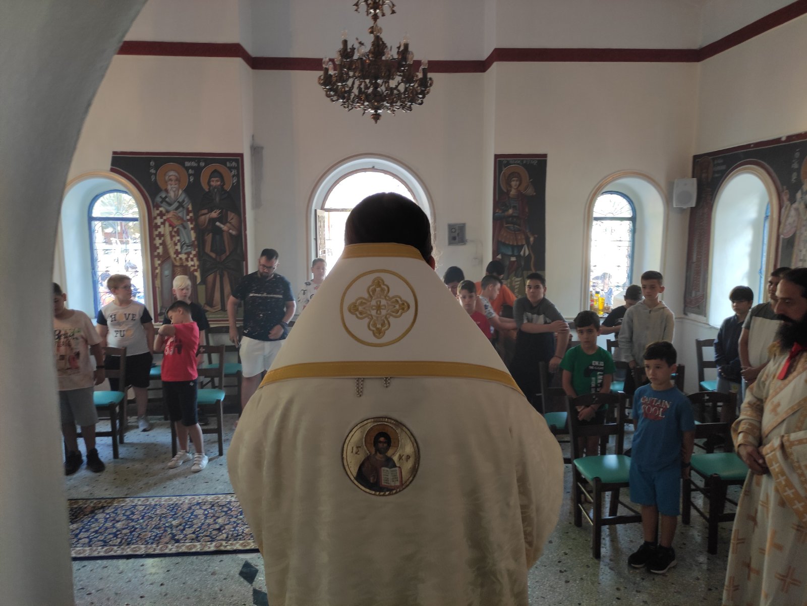 Μετά την Θεία Λειτουργία ο Σεβασμιώτατος ανέλυσε στα παιδιά, σύμφωνα με το πρόγραμμα, το Αγιογραφικό Ανάγνωσμα, ερμηνεύοντας περικοπή από την προς Ρωμαίους Επιστολή με καταληπτό και εύληπτο τρόπο, προσαρμοσμένο στα μάτια και στον κόσμο των παιδιών.