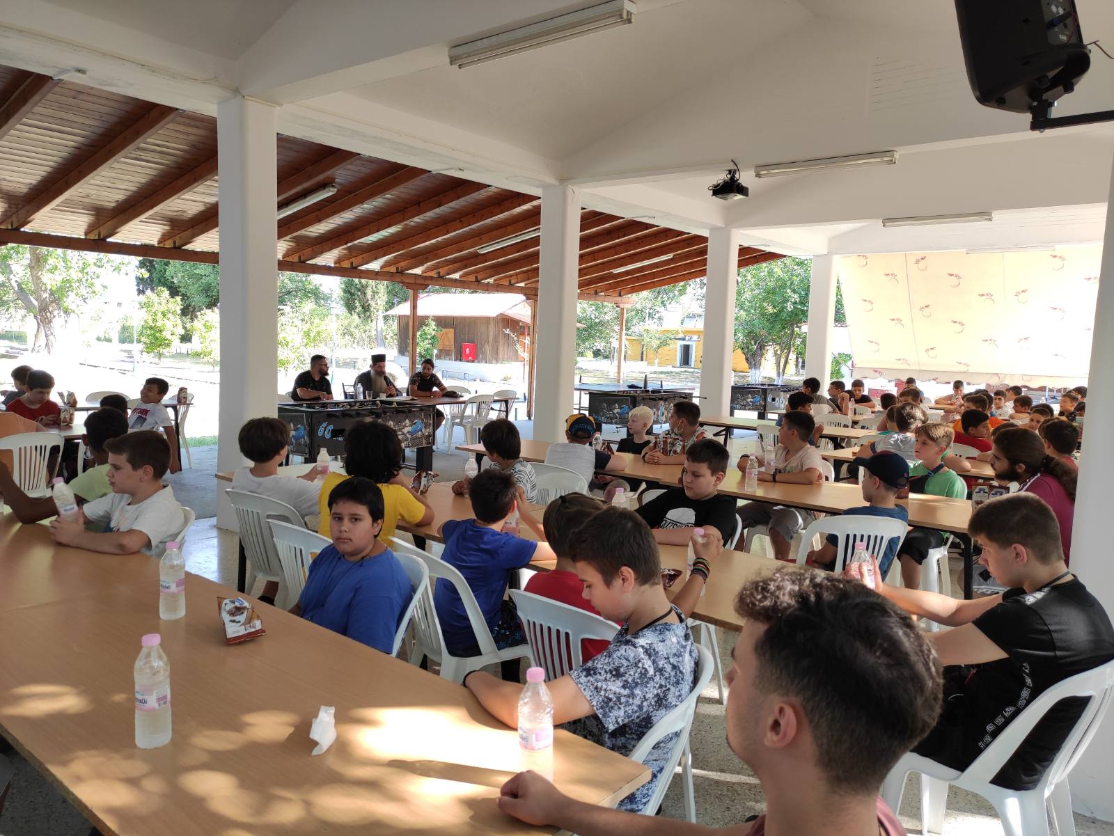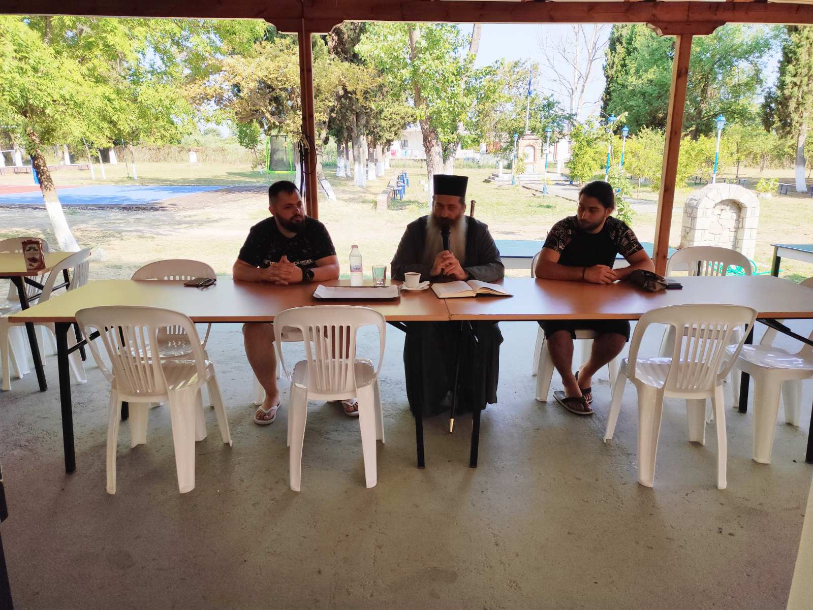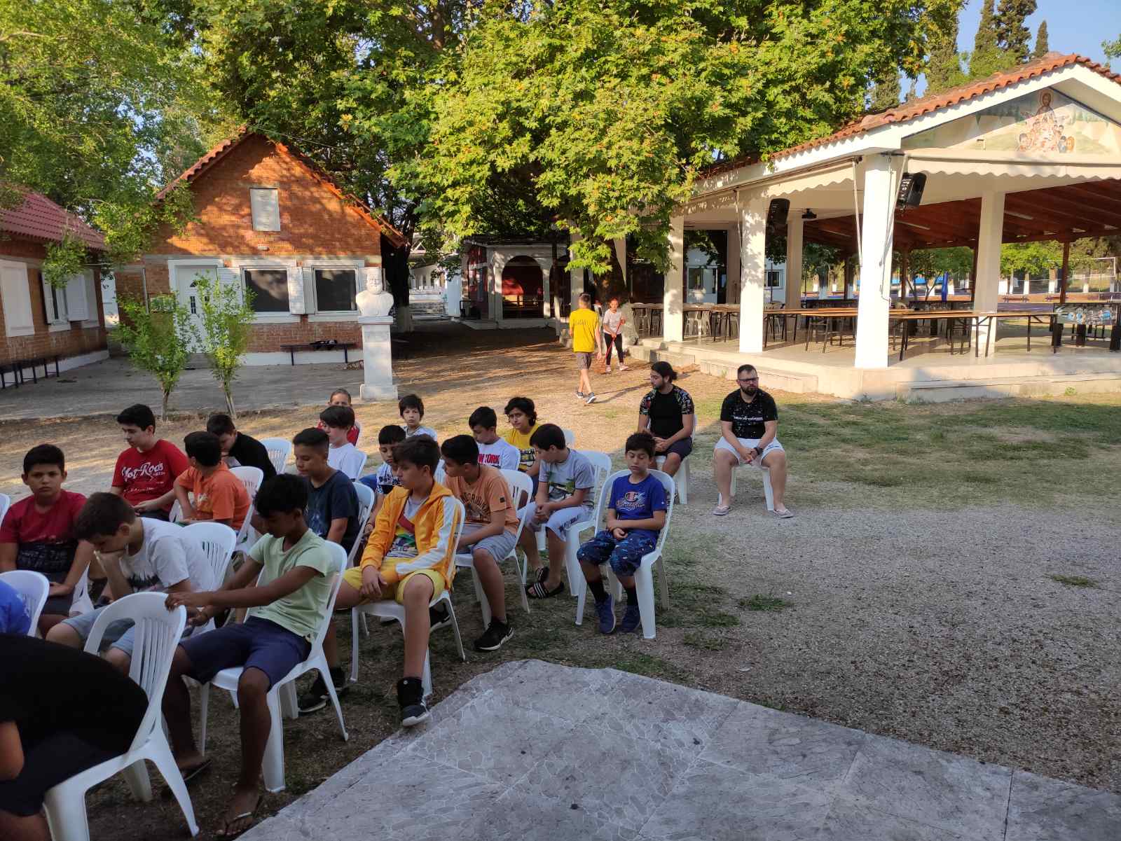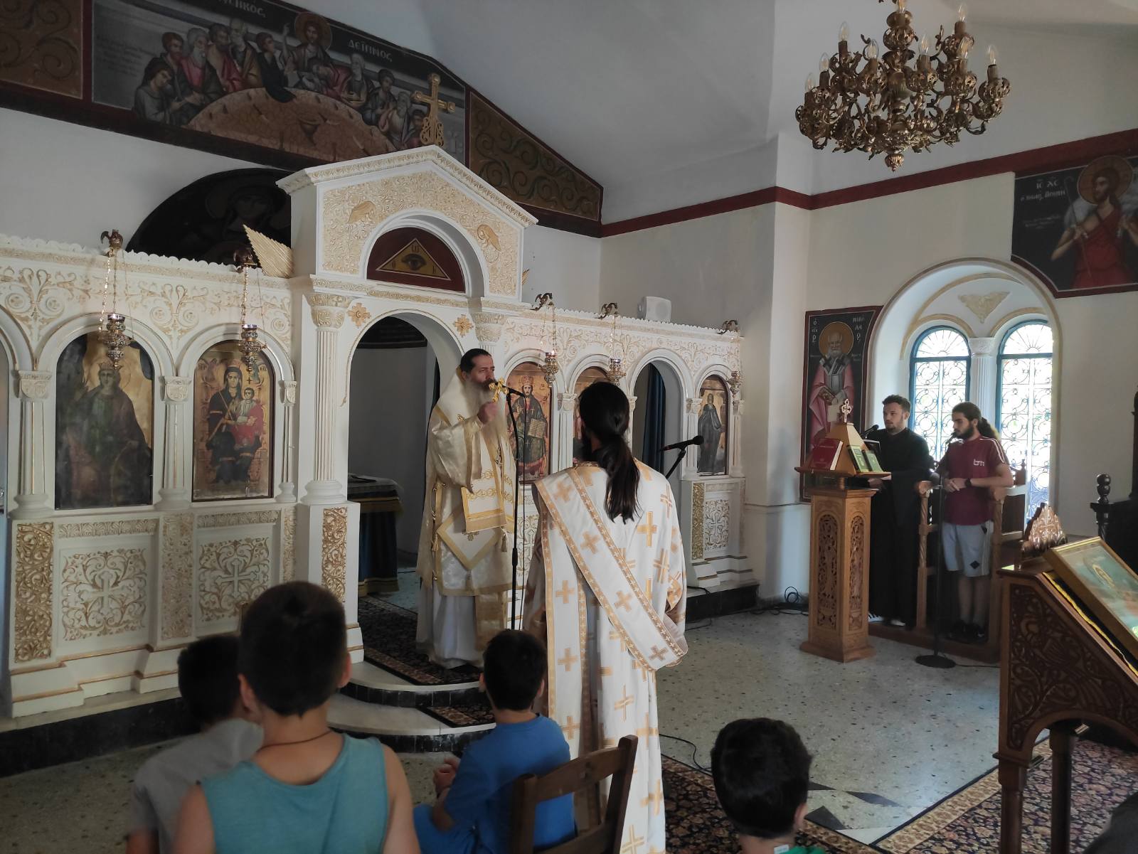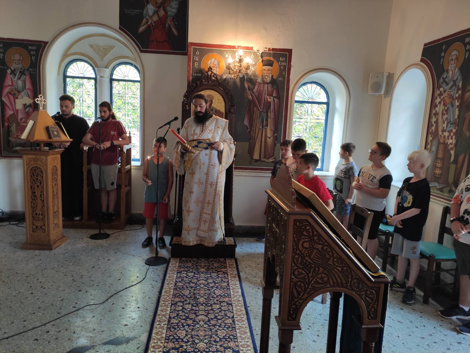 Μετά την Θεία Λειτουργία ο Σεβασμιώτατος ανέλυσε στα παιδιά, σύμφωνα με το πρόγραμμα, το Αγιογραφικό Ανάγνωσμα, ερμηνεύοντας περικοπή από την προς Ρωμαίους Επιστολή με καταληπτό και εύληπτο τρόπο, προσαρμοσμένο στα μάτια και στον κόσμο των παιδιών.