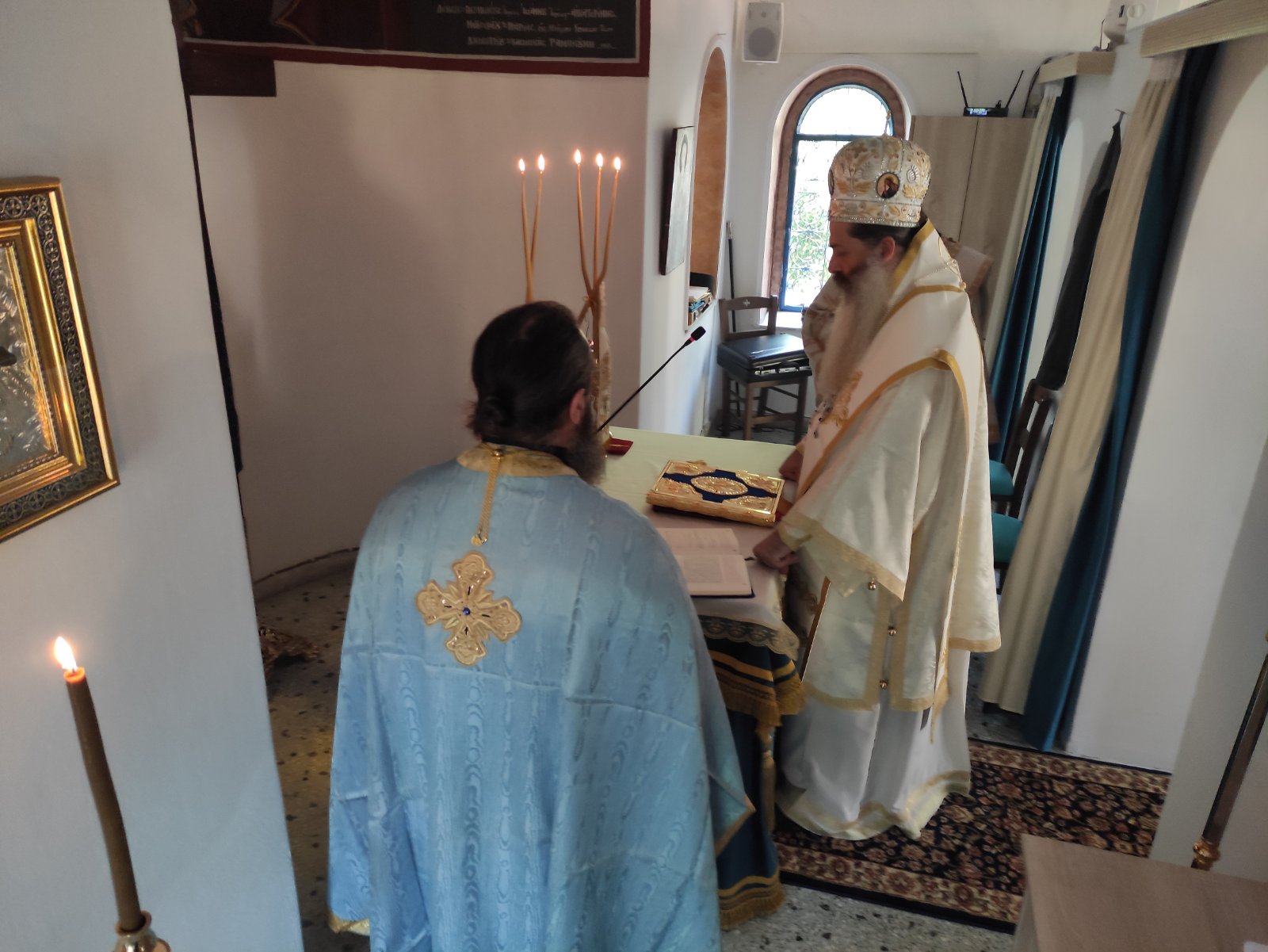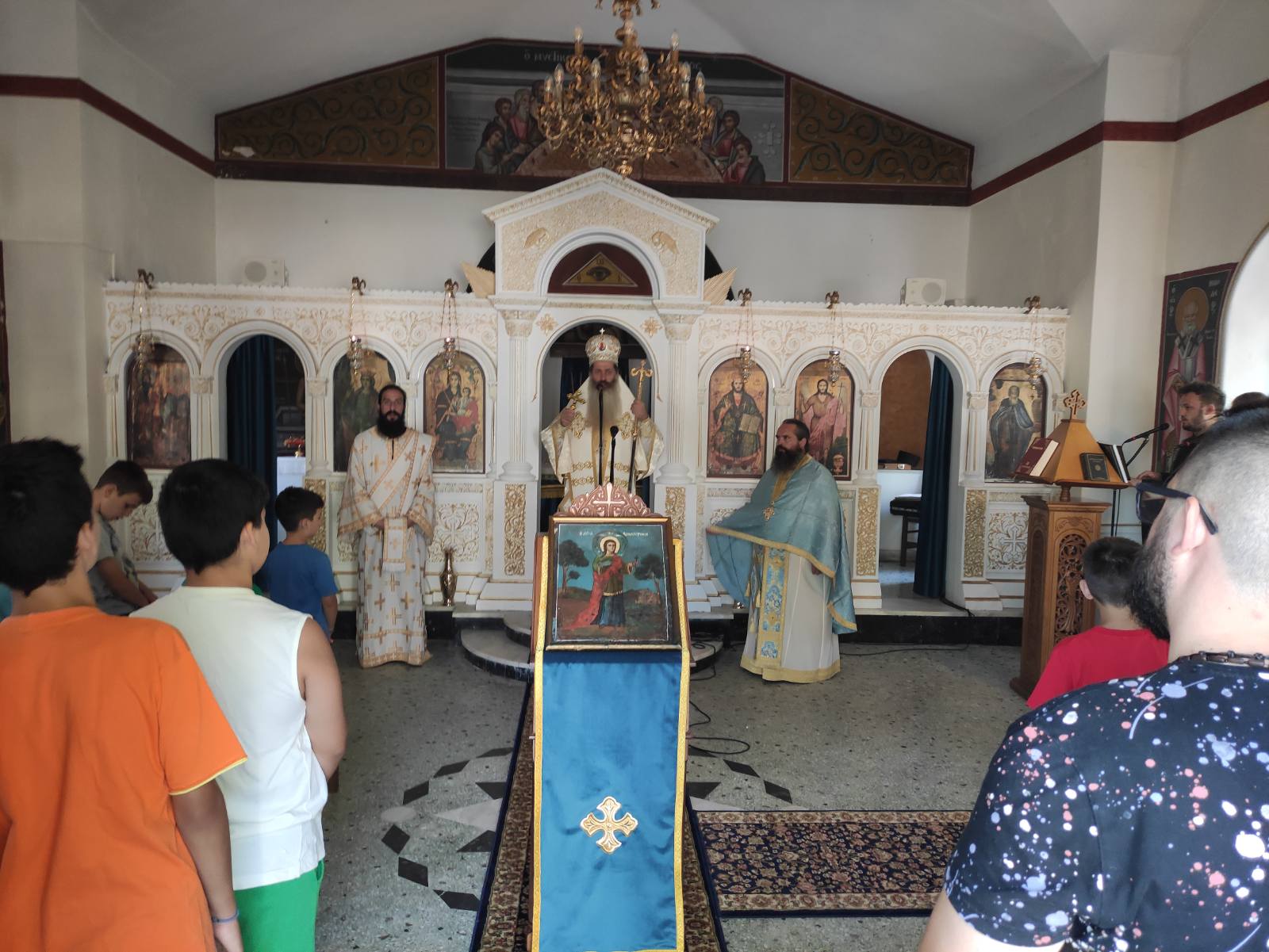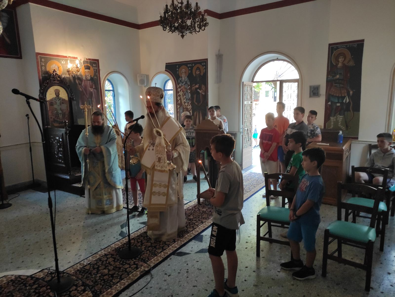Στον ιστορικό Ναό της Αγίας Αικατερίνης, ο οποίος στο πλαίσιο των εργασιών ανακαινίσεως του Κατασκηνωτικού Κέντρου εξωραΐστηκε με μέριμνα του Πρωτοσυγκέλλου της Μητροπόλεως π. Αγγέλου, ο κ. Συμεών τέλεσε σήμερα την πρώτη Θεία Λειτουργία της φετινής κατασκηνωτικής χρονιάς, εξηγώντας μάλιστα στα παιδιά τα τελούμενα της Θείας Λειτουργίας, τα όποια έψαλαν όλα μαζί τους ύμνους της Θείας Λειτουργίας.