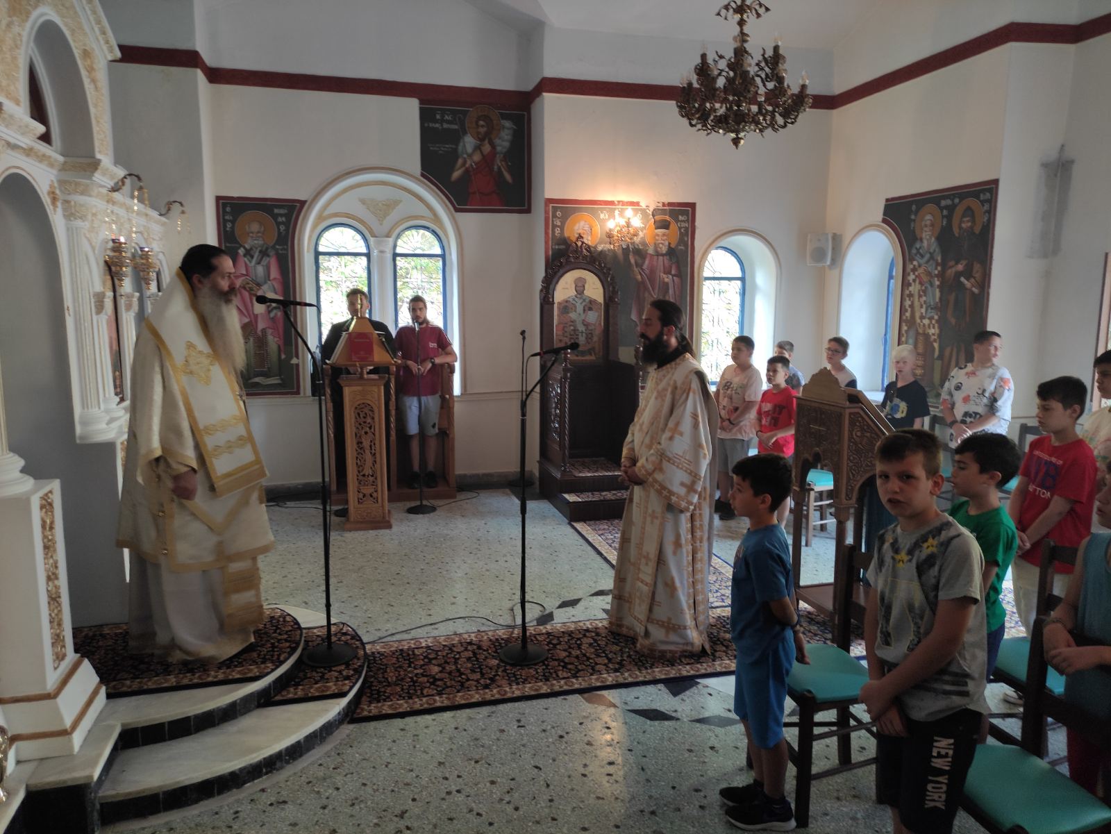 Με Αρχιερατική Θεία Λειτουργία, ιερουργούντος του Σεβασμιωτάτου Μητροπολίτου Φθιώτιδος κ. Συμεών ξεκίνησε το πρώτο πρωινό των μικρών κατασκηνωτών στο Κατασκηνωτικό Κέντρο της Ιεράς Μητροπόλεως Φθιώτιδος «Η Αγία Αικατερίνη» στο Καινούργιο Λοκρίδος, την Τρίτη 6 Ιουλίου 2021.