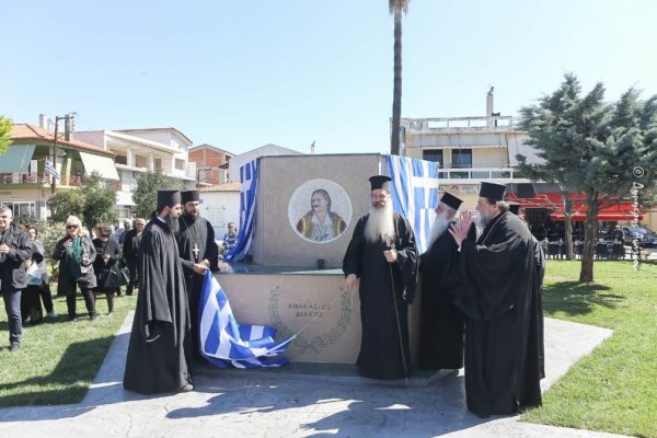 Ακολούθως ο Σεβασμιώτατος κ. Συμεών τέλεσε τον Αγιασμό των Εγκαινίων της νεο – αναπλασθείσης κεντρικής πλατείας της Μαλεσίνας, η οποία φέρει το όνομα: «Πλατεία Ελευθερίας» και ευλόγησε τα αποκαλυπτήρια των αναθηματικών στυλών αφιερωμένα στους οπλαρχηγούς του 182.
