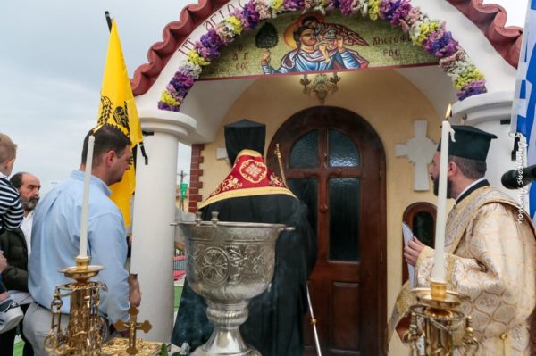 Αρχικά ο Σεβασμιώτατος τέλεσε τα θυρανοίξια του νέου Ιερού Παρεκκλησίου προς τιμήν του Αγίου Μεγαλομάρτυρος Χριστοφόρου της Ενορίας Αγίας Παρασκευής στην Μαρτυρική πόλη της Σπερχειάδος την Κυριακή 8 Μαΐου 2022, παραμονή της Εορτής του Αγίου.