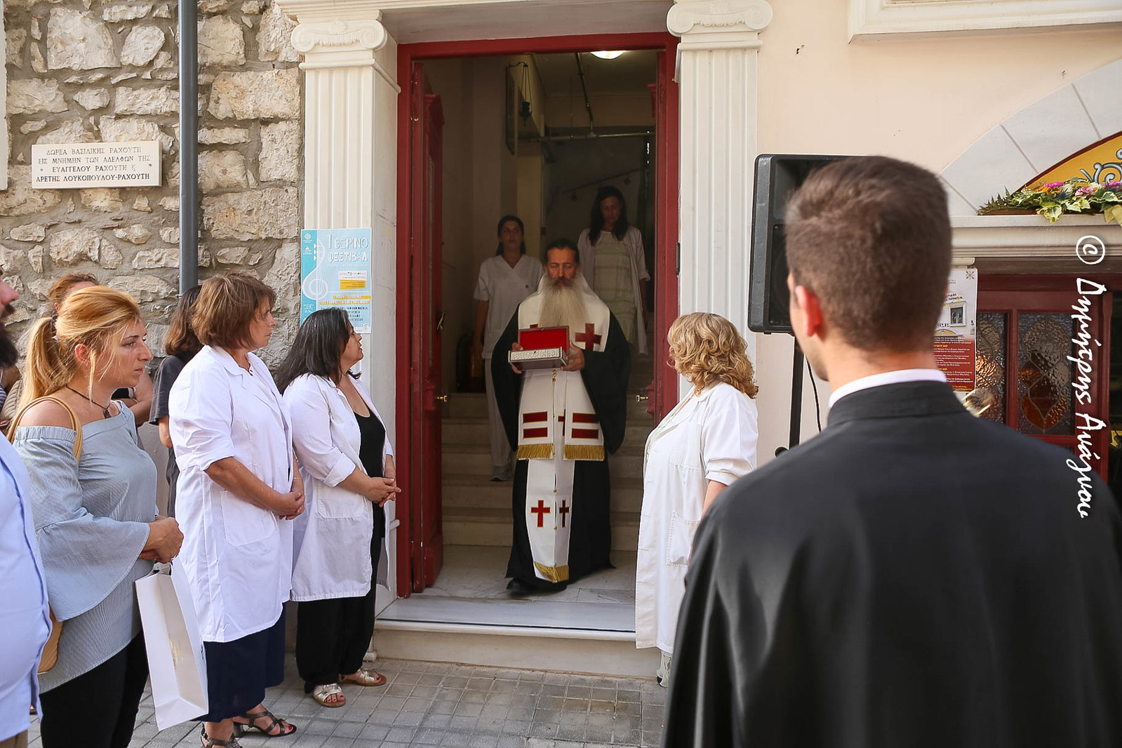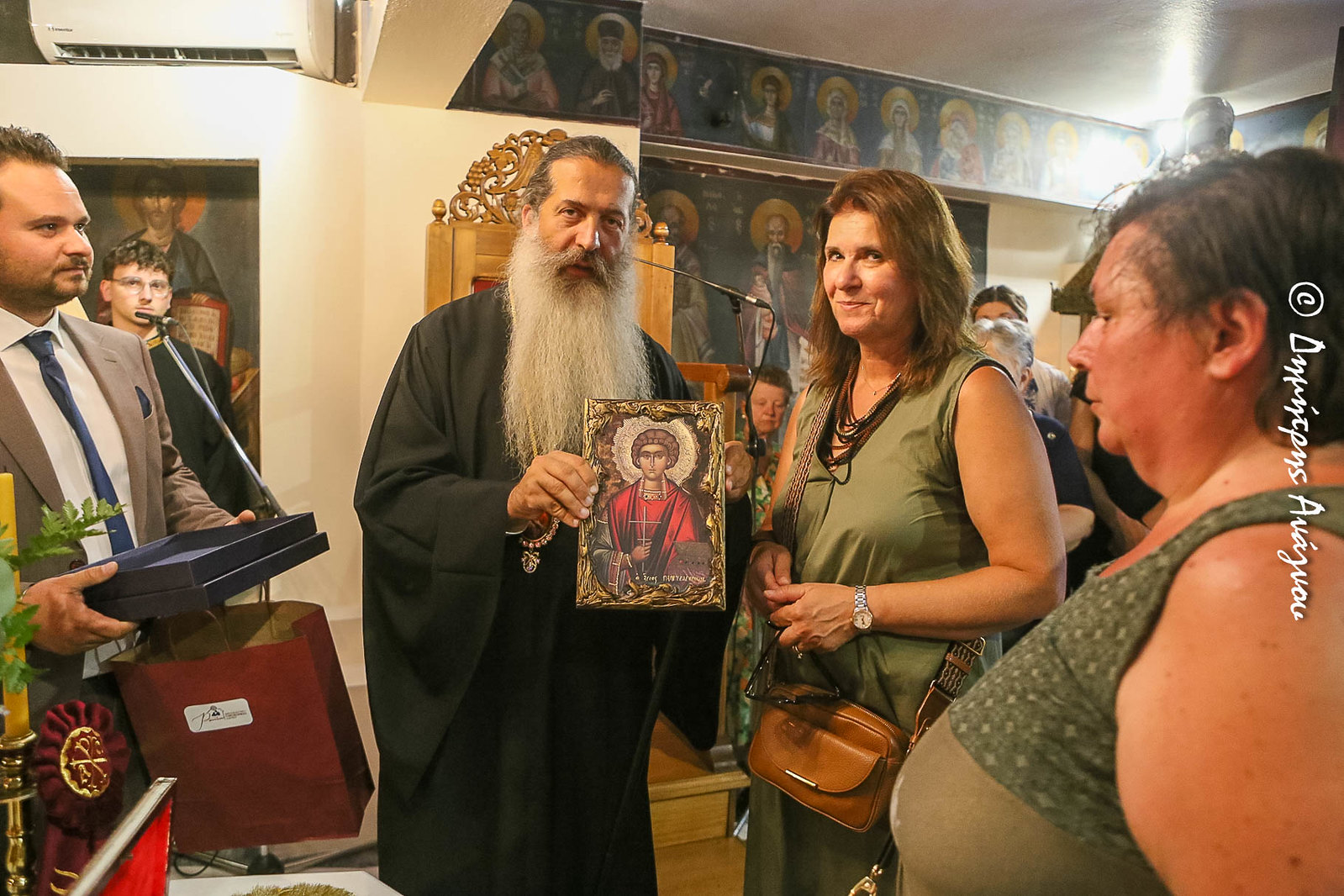 Ο Άγιος Παντελεήμων είναι πρότυπο θυσίας και προσφοράς, Να τον παρακαλέσουμε θερμά και τώρα που θα τον λιτανεύσουμε εδώ στο χωριό, να παρακαλέσουμε στην προσευχή μας ιδιαίτερα για αυτήν την απειλή της φωτιάς όχι μόνο για την περιοχή μας για όλη την πατρίδα μας και για όλο τον κόσμο. Ποτέ μη σκεφτόμαστε μην έρθει το κακό στο σπίτι μας. Είναι πολύ λάθος αυτή η νοοτροπία. Όλος ο κόσμος είναι σπίτι μας και ό,τι κακό βρίσκει τον αδελφό μας, είναι κακό και για εμάς».