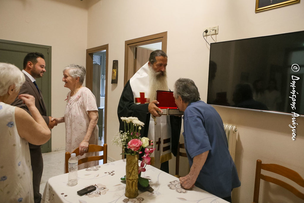 «Να ευχηθώ σε όλους σας χρόνια πολλά, ευλογημένα, χωρίς πειρασμούς και δοκιμασίες, είτε από φυσικές απειλές είτε από πανδημίες, είτε από άλλες δυσκολίες. Ο Θεός να βάλει το χέρι Του, να μας σκεπάζει όλους ο Άγιος Παντελεήμων, να σας δίνει δύναμη και κουράγιο στη διακονία σας, ιδιαίτερα εσάς τους φύλακες αγγέλους αυτού εδώ του κέντρου, αυτού του κέντρου της αγάπης, αυτού του Ιδρύματος της Μητροπόλεώς μας, αυτής της Δομής της Μονάδας Φροντίδας Ηλικιωμένων, η οποία αποτελεί έναν προμαχώνα της αγάπης, ένα φυλάκιο της αγάπης, μία πολεμίστρια της αγάπης, διότι ο μόνος επιτρεπτός πόλεμος, είναι ο πόλεμος της διακονίας και ο πόλεμος της αγάπης, η θυσία δηλαδή για τον συνάνθρωπο, η θυσία για τον ευάλωτο, η θυσία για τον αδύναμο, η θυσία για το γέροντα, για τη γερόντισσα, για το παιδί, η αυτοθυσία δηλαδή, η όποια αυτή δημιουργεί προϋποθέσεις κοινωνικής εξέλιξης, ανάπτυξης, ευημερίας και προόδου μέσα σε έναν κόσμο τον οποίον πάντοτε θα τον χτύπα ο ατομισμός, ο εγωισμός, η φιλαυτία, το κλείσιμο στον εαυτό μας. Αυτός είναι ο μεγάλος μας εχθρός και η απάντηση σε όλα αυτά είναι η προσφορά. Η προσφορά και η αγάπη, ένα χαμόγελο, ένα βλέμμα, ένα νοιάξιμο, μία ανοιχτή αγκαλιά είναι η καλύτερη απάντηση, η δική μας απάντηση την οποία μπορούμε να προσφέρουμε στο σύγχρονο κόσμο και στην κοινωνία στην οποία ζούμε.