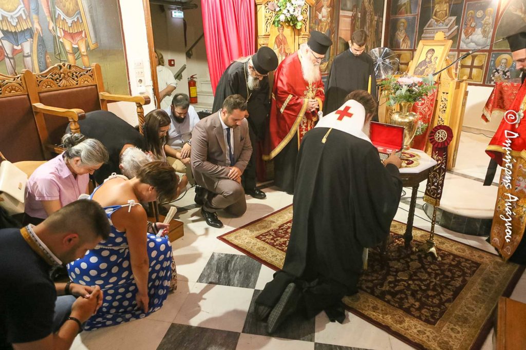 Τέλος, ο Σεβασμιώτατος κ. Συμεών το βράδυ της εορτής επισκέφθηκε προσκυνηματικώς τον Πανηγυρίζοντα Ιερό Μητροπολιτικό Ναό του Αγίου Παντελεήμονος Καμένων Βούρλων, όπου και τέλεσε ειδική δέηση, γευόμενος την ένθερμη υποδοχή, την αγάπη και τον σεβασμό του αγίου Προϊσταμένου του Ναού και πολιού γέροντος, Αρχιμ. π. Χριστοφόρου Κολοκυθά, τον οποίο ο Σεβασμιώτατος κ. Συμεών ιδιαιτέρως ευχαρίστησε αλλά και επαίνεσε.