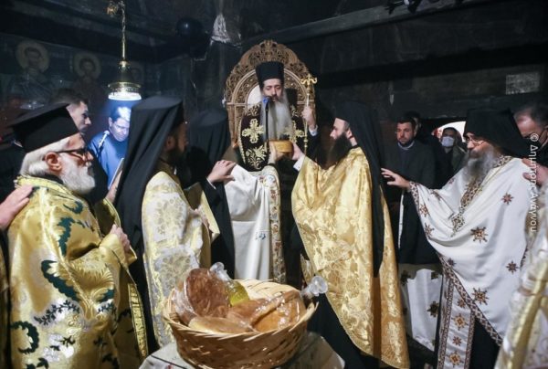 Τις ευχές του ιερού κλήρου, των αρχόντων καθώς και του ποιμνίου της Ιεράς Μητροπόλεως επί τη πενταετή επετείω της εις Επίσκοπον Χειροτονίας κατέθεσε στον Σεβασμιώτατο κ. Συμεών ο Άγιος Πρωτοσύγκελλος της Ιεράς Μητροπόλεως και Καθηγούμενος της Ιεράς Μονής του Αγίου Βλασίου Αρχιμ. του Οικουμενικού Θρόνου π. Εφραίμ Τριανταφυλλόπουλος.