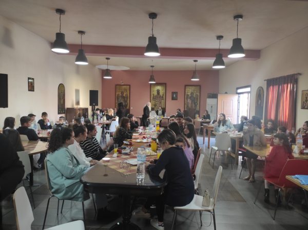 Ακολούθως, ο Σεβασμιώτατος κ. Συμεών στο Ενοριακό Πνευματικό Κέντρο του Ναού επιμελήθηκε νεανικής συντροφιάς με τους μαθητές και τις μαθήτριες των κατηχητικών συνάξεων της ενορίας διδάσκοντας και οικοδομώντας πνευματικά περί της επουρανίου Βασιλείας.