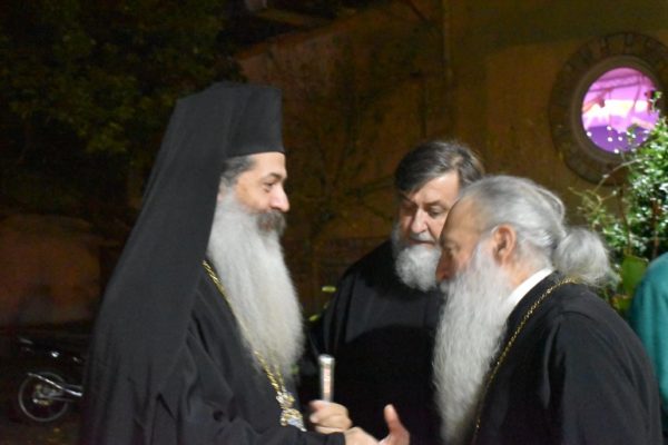 Προηγήθηκαν εκκλησιαστικοί ύμνοι, η προσευχή και ο θείος λόγος του Σεβασμιωτάτου κ. Συμεών.