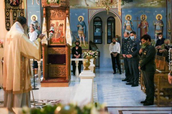 Προ της απολύσεως ο Σεβασμιώτατος ευχήθηκε στον άγοντα τα ονομαστήριά του Πανοσιολ. Αρχιμ. π. Βαρθολομαίο Κάσση, Εφημέριο Ιεροκήρυκα της Ιεράς Μητροπόλεως και Ιερατικό Προϊστάμενο της Ενορίας, να έχει έτη πολλά, να διακονεί την Εκκλησία με ζήλο, αυταπάρνηση, φιλοτιμία και με εργατικότητα.