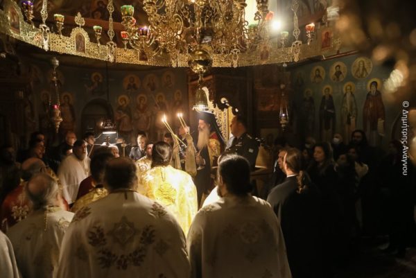 Ο Σεβασμιώτατος κ. Συμεών χοροστάτησε στον Αναστάσιμο Εσπερινό στο Καθολικό της Ιεράς Μονής και στην συνέχεια προεξήρχε της Ιεράς Παννυχίδος, όπου ενώπιον της Αγίας Λάρνακος του Οσίου ο κ. Συμεών, πλαισιούμενος από όλους τους πατέρες, τους χορούς των ιεροψαλτών, καθηγητών, αλλά και μικρών μαθητών και μαθητριών του Ωδείου της Ιεράς Μητροπόλεως Φθιώτιδος «Γερμανός ο Μελωδός» υπό την καθοδήγηση του Διευθυντού του Ωδείου Δρ. κ. Ανδρέα Ιωακείμ, έψαλαν τα εγκώμια του Οσίου, εκ της εγκεκριμένης υπό της Ιεράς Συνόδου της Εκκλησίας της Ελλάδος Ιεράς Ακολουθίας του Οσίου, ποίημα του Υμνογράφου Σεβασμιωτάτου Μητροπολίτη Εδέσσης, Πέλλης και Αλμωπίας κ. Ιωήλ.