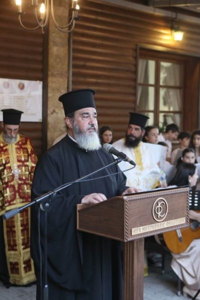 «Κανείς δεν μπορούσε να φανταστεί πως, όταν για πρώτη φορά επισκεφθήκατε αυτόν τον ιερό ναό ως Αρχιμανδρίτης για να εκκλησιαστείτε, διερχόμενος από την Εθνική Οδό, θα μας αξίωνε η χάρη του Θεού να εγκαινιάζουμε σήμερα, εδώ σ’ αυτό τον ευλογημένο τόπο, το Δέκατο Παράρτημα του Ωδείου της Ιεράς Μητροπόλεως «ΓΕΡΜΑΝΟΣ ο ΜΕΛΩΔΟΣ», ένα δικό σας έργο, ένα έργο αγάπης, ενότητας και συνεργασίας, αξίες που μας εμπνέετε καθημερινά. Ένα έργο που αγκαλιάζει τα όνειρα των παιδιών της περιοχής, των δικών μας παιδιών!