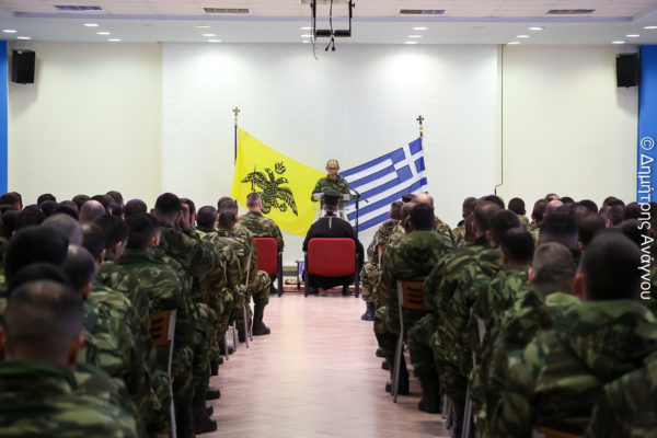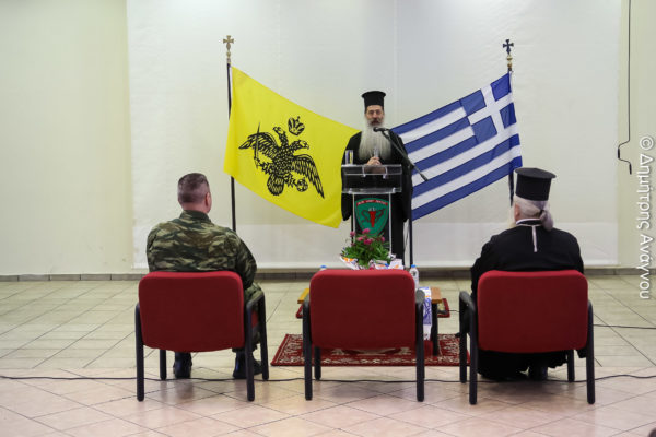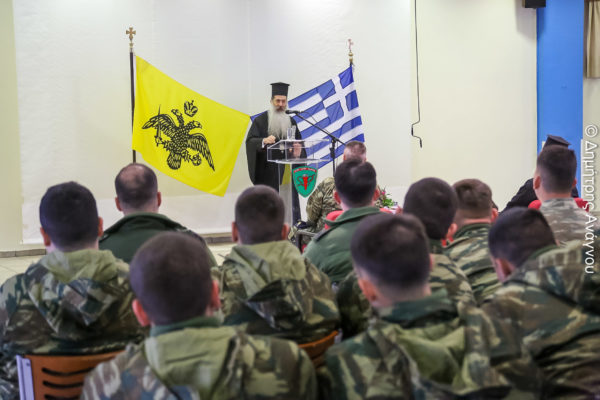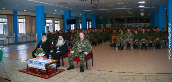 Ο Σεβασμιώτατος κ. Συμεών στο πλαίσιο των τακτικών καθιερωμένων ιεραποστολικών και κατηχητικών δράσεων προς τα στρατευμένα νιάτα και στο πλαίσιο της Αγίας και Μεγάλης Τεσσαρακοστής, την οποία διανύουμε, και εν όψει της Μεγάλης Θεομητορικής Εορτής του Ευαγγελισμού της Υπεραγίας Θεοτόκου πραγματοποίησε σήμερα το πρωί ποιμαντική επίσκεψη στο Κέντρο Εκπαιδεύσεως Υλικού Πολέμου στη Λαμία με εκτενή ομιλία στους εκατοντάδες νέους οπλίτες της 2025 ΄Β ΕΣΣΟ με θέμα: «Τη Υπερμάχω Στρατηγώ τα νικητήρια».