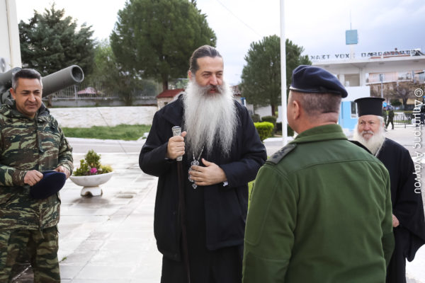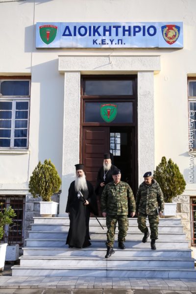 Τον κ. Συμεών υποδέχθηκε με εγκαρδιότητα και σεβασμό ο Φρούραρχος Λαμίας, Διοικητής του ΚΕΥΠ Ταξίαρχος Πέτρος Περιμένης μαζί με τα στελέχη του Κέντρου Εκπαιδεύσεως Υλικού Πολέμου και τον ευχαρίστησε για την άψογη συνεργασία μεταξύ της τοπικής Εκκλησίας και του Κέντρου, καθώς και για την μέριμνα του Σεβασμιωτάτου να τελούνται Ιερές Ακολουθίες της Μ. Τεσσαρακοστής στο Ιερό Ναό της Αγίας Μαρίνας εντός του Στρατοπέδου προς ευλογία και πνευματική ενίσχυση των οπλιτών και των στελεχών.