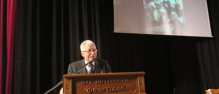 Προσκεκλημένος ομιλητής του Σεβασμιωτάτου, ήταν ο Ελλογιμώτατος, Ομότιμος Καθηγητής της Φιλοσοφικής Σχολής του Πανεπιστημίου Αθηνών κ. Γεώργιος Σπανός, ο οποίος ανέπτυξε το θέμα: «Η παρουσία της Εκκλησίας στον αγώνα για την αρωγή και στήριξη των ορφανών και απροστάτευτων παιδιών και εφήβων».