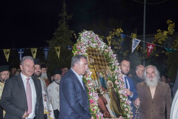 Ακολούθησε λιτανεία της Ιεράς Εικόνας στην οποία προπορευόταν, η Φιλαρμονική του Δήμου Λαμιέων, μέλη του χορευτικού του Πολιτιστικού Κέντρου Σταυρού με παραδοσιακές στολές, τα παιδιά του Κατηχητικού Σχολείου και τα λάβαρα και εξαπτέρυγα.