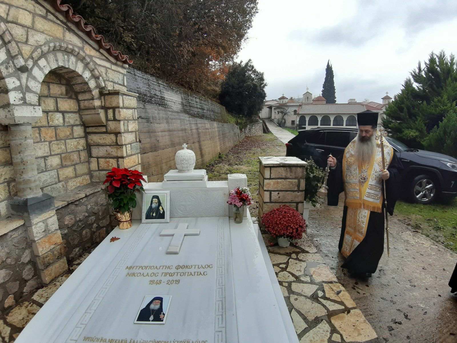 Στο τέλος της Θείας Λειτουργίας ο Σεβασμιώτατος τέλεσε μνημόσυνο για τους τρεις άμεσα προκατόχους του Μητροπολίτες Φθιώτιδος κυρό Νικόλαο, κυρό Δαμασκηνό και κυρό Αμβρόσιο αναφέροντας με νόημα: